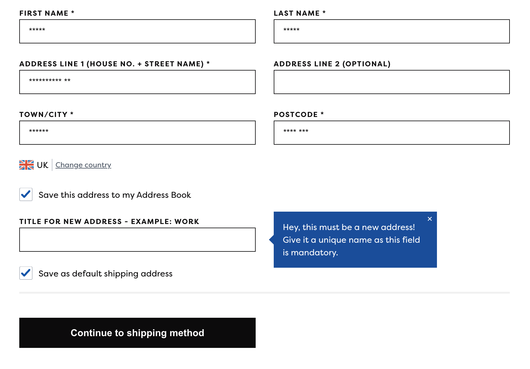 A short, clear explanation on how to complete the field – for example, what information is needed or which format is required. Or why this information is being requested, to build trust.